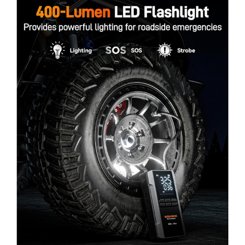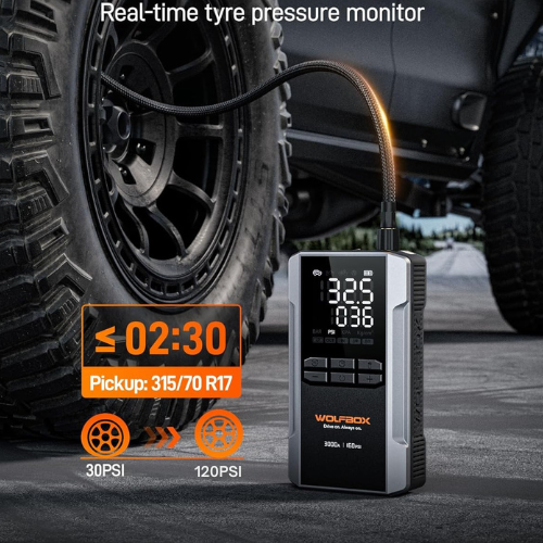 A beépített kompresszor elég erős ahhoz, hogy könnyedén felfújd az autók, SUV-k, pickupok és munkagépek gumiabroncsait.